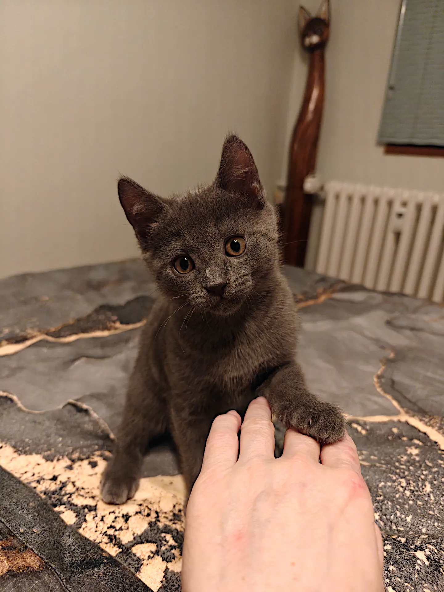 Kotěcí divoch už lítá po celé ložnici. Jednou v noci se vyškrabal přes noční stolek do postele velkých hlav, což byl nadkotěcí výkon a dlouho trvalo než velké hlavy přišly na to, jak se tam ten malý prďola mohl dostat. Tedy dlouho, mrňous jim to prostě musel předvést osobně, jinak by na to nepřišly, protože jim to přišlo jako nemožné. Od té doby už prcek riskuje zavalení a nervové šoky velkých hlav, protože spokojeně spí mezi nimi. Občas si objedná mobilní mléčný bar. Potom se z prostoru mezi dekami ozývá spokojené hlasité mlaskání, které vyloženě zpestřuje velkým hlavám spánek.