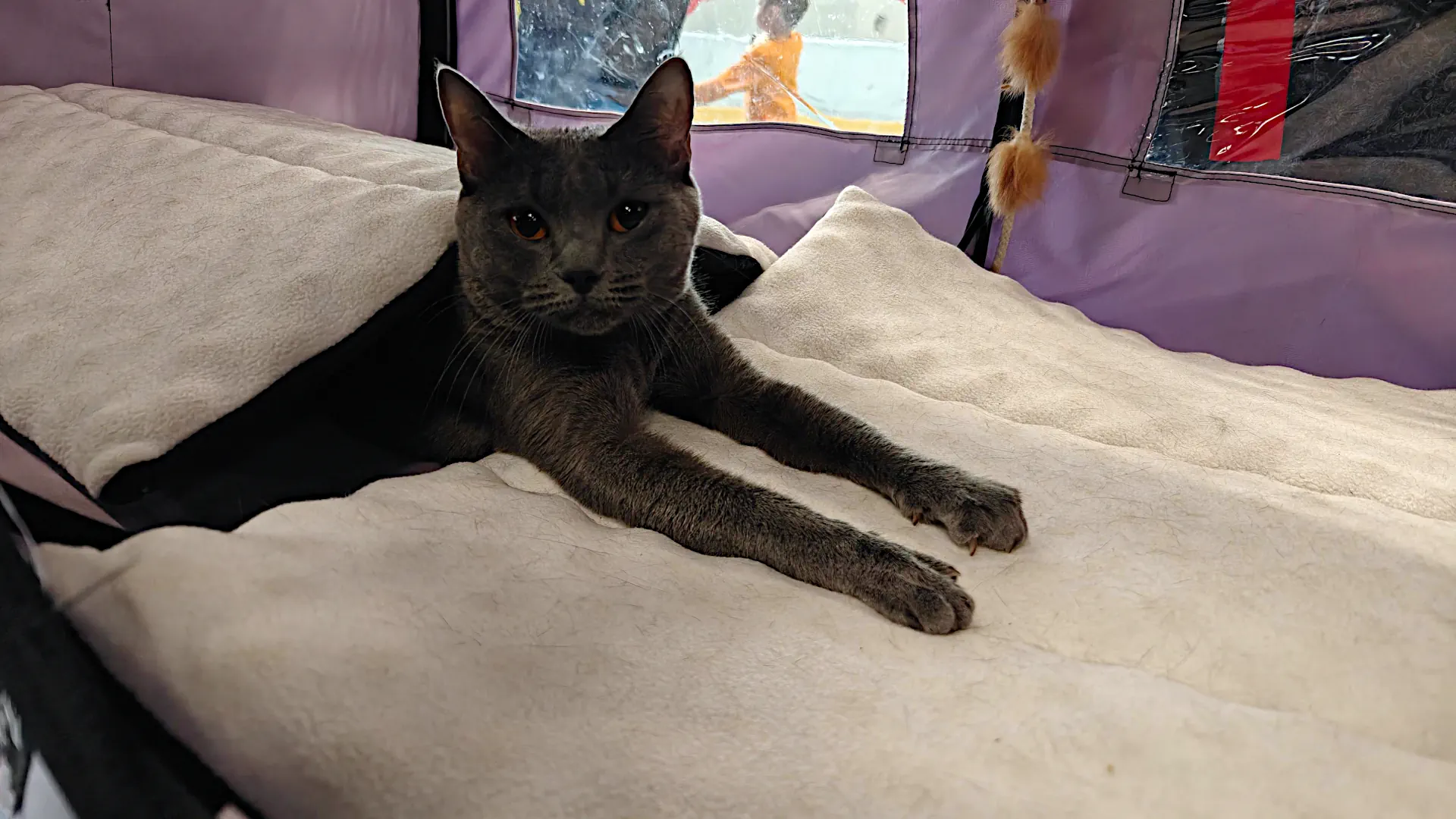 Na výstavu dorazili ještě švýcarští vystavovatelé s kartouzským kocourkem a kočičkou. Kočička byla ve stejné třídě jako Leeloo, takže si holky dělaly vzájemnou konkurenci. Leeloo vyšla z tohoto souboje jako vítězka a odnesla si certifikát. Letynka si také odnesla poslední certifikát nutný pro získání titulu Supreme šampion. Ocenění Best in Variety si nakonec po dlouhém rozvažování ze souboje s Letynkou odnesl kocourek švýcarských chovatelů.
